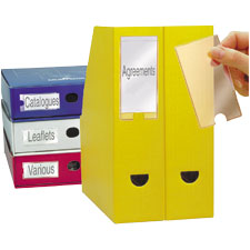 For quick and easy labelling of ring binders, letter trays, box files, magazine racks etc.