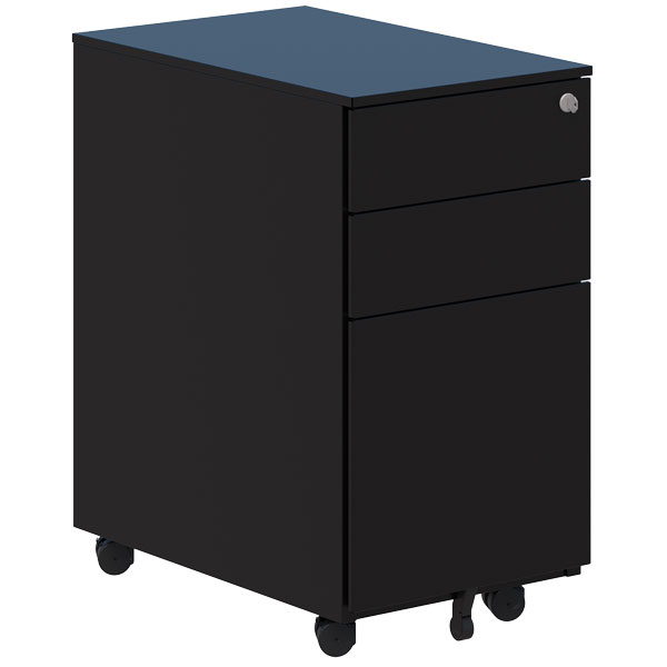 ACCENT STEEL SLIM MOBILE PEDESTAL H600 X W300 X D500MM BLACK
