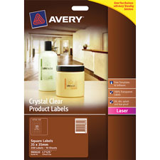 Avery Crystal Clear Square Product Labels let you create professionally branded products directly from your printer. The 100% transparent glossy labels virtually disappear into the background, allowing coloured or clear packaging to look as though it has been printed and customised with your brand. You can use free Avery software and templates to design professional-looking product labels. The durability of the labels makes them ideal for products made with oil, or products that will be transported or heavily handled