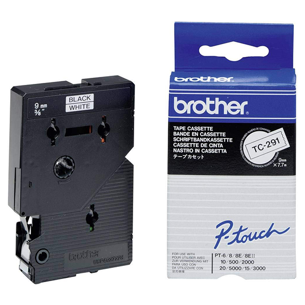 BROTHER TC-291 LAMINATED LABELLING TAPE 9MM BLACK ON WHITE