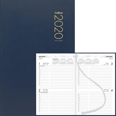 COLLINS DIARY 82A W125 X L195MM NAVY 2 DAYS PER PAGE EVEN YEAR