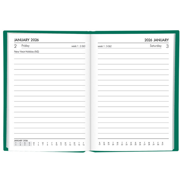 COLLINS DIARY POCKET A71P W74 X L105MM GREEN DAY PER PAGE EVEN YEAR