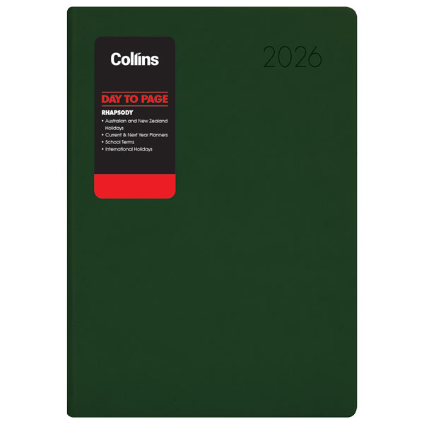 COLLINS DIARY RHAPSODY A51 RACING GREEN DAY TO PAGE EVEN YEAR