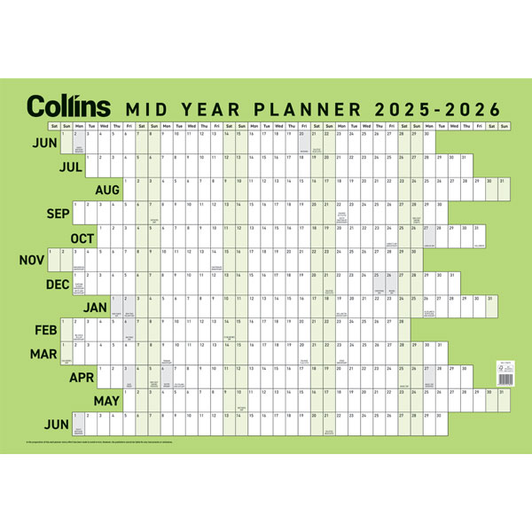COLLINS MID YEAR WALLPLANNER LARGE 700X990MM 2025/2026