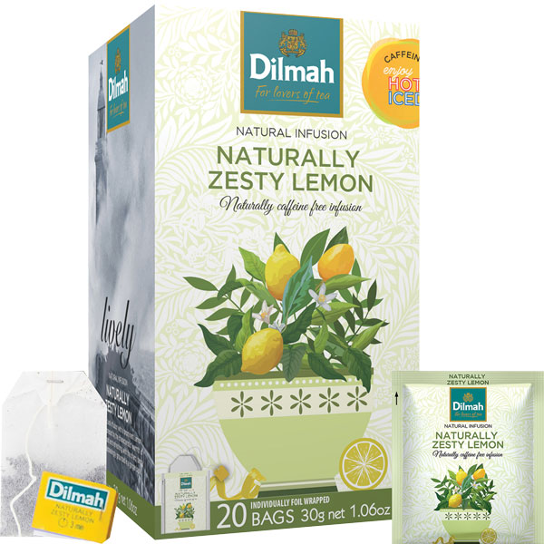 DILMAH TEA BAGS NATURALLY ZESTY LEMON INFUSION FOIL ENVELOPED BOX 20