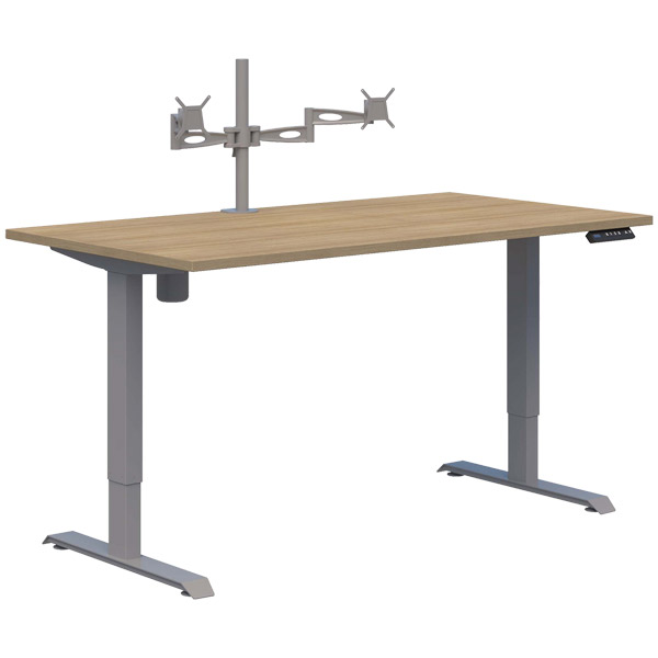 DUO II ELECTRIC DESK W1500 X D800 X H695-1145MM SILVER FRAME CLASSIC OAK WITH METALICON DOUBLE MONIT...