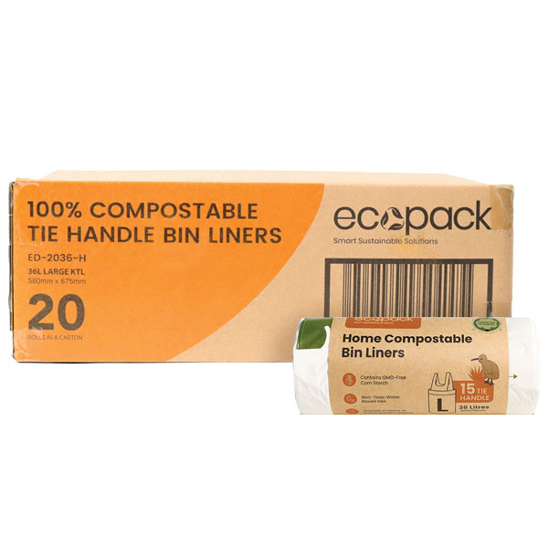 ECOPACK BIN LINERS KITCHEN COMPOSTABLE 36L ROLL 15