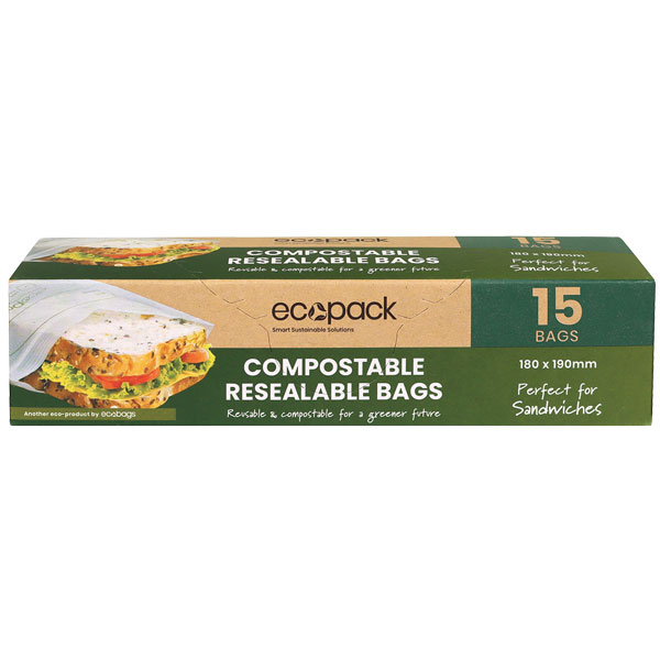 ECOPACK COMPOSTABLE RESEALABLE SANDWICH BAGS PACK 15