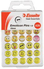 ESSELTE NOVELTY PINS EMOTICONS 1.0 11MM PACK 25