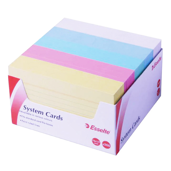 ESSELTE RULED SYSTEM CARDS 127 X 76MM ASSORTED PACK 500