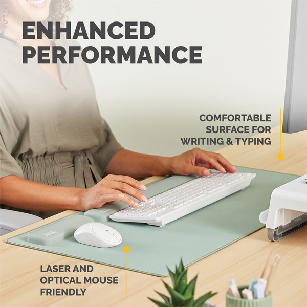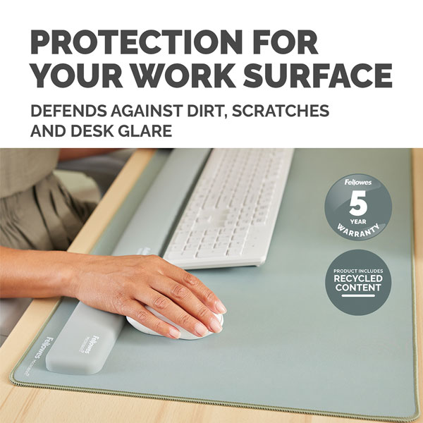 Provides a soft, padded surface for forearms and wrists, improving posture and creating a smooth area for typing, mousing, and writing