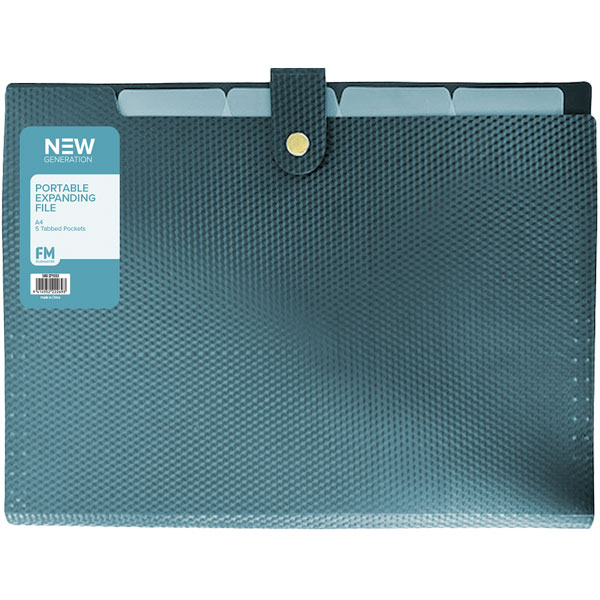 FM PORTABLE EXPANDING FILE A4 5 POCKET OCEAN BLUE