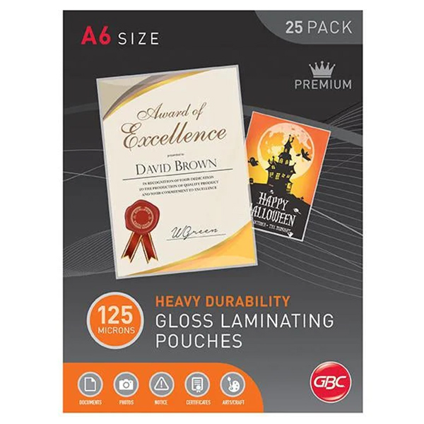 GBC LAMINATING POUCH 125 MICRON A6 CLEAR PACK 25