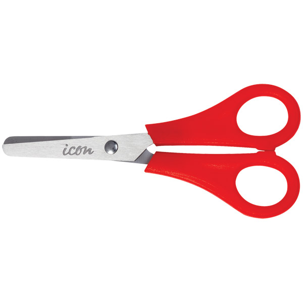 Icon kids scissors are created for easy use by little hands. Stainless steel blades with blunt ends. They are ideal for use in the classroom or at home for art & craft projects. 5 inch - 130mm.