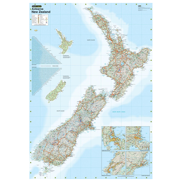 KIWI MAPS PATHFINDER SHEET NZ AOTEAROA LAMINATED 880 X 610MM