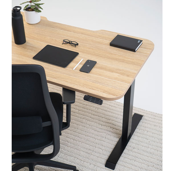 KNIGHT HAVEN BOOST ELECTRIC SINGLE SIDED DESK W1800 X D800MM BLACK FRAME ATLANTIC OAK TOP