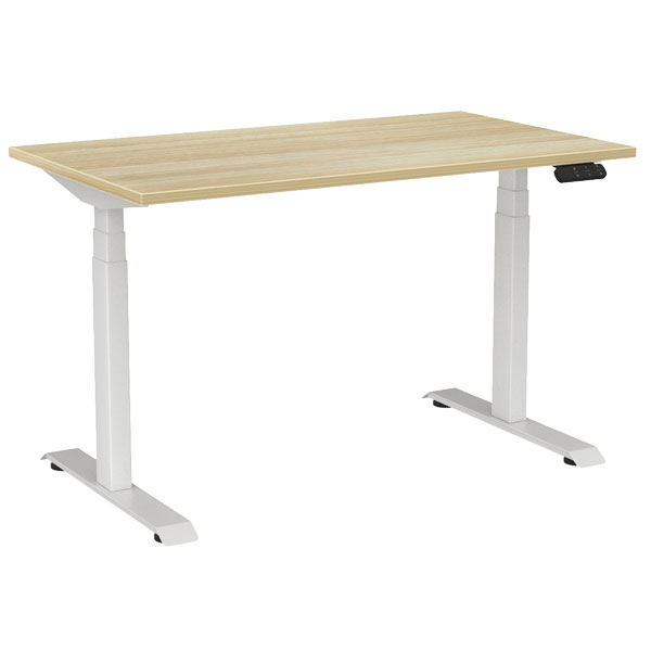 KNIGHT HAVEN ELECTRIC DESK W1200 X D700 X H630-1280MM WHITE FRAME ATLANTIC OAK TOP
