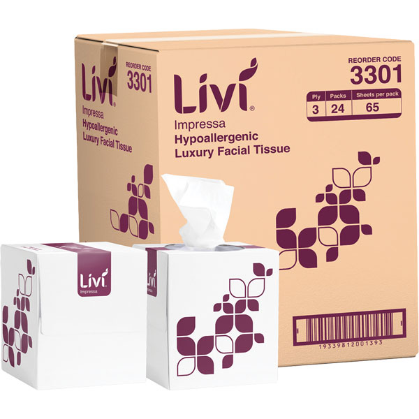 The Livi Impressa 3ply facial tissue delivers a premium soft touch