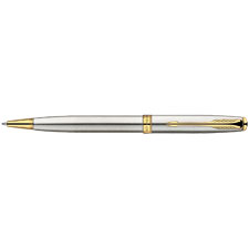 PARKER SONNET BALLPOINT PEN STAINLESS STEEL GOLD TRIM