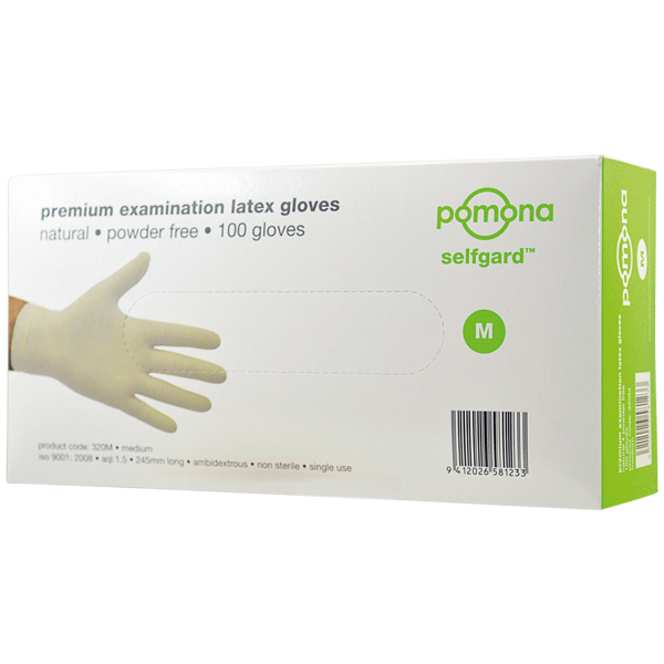 SELFGARD DISPOSABLE GLOVE LATEX POWDER FREE MEDIUM BOX 100