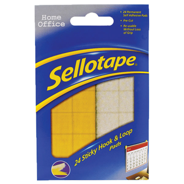 SELLOTAPE STICKY HOOK AND LOOP PADS PERMANENT 20MM SQUARES PACK 24