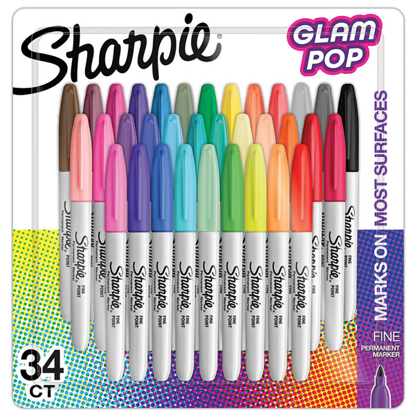 SHARPIE FINE POINT PERMANENT MARKERS GLAM POP PACK 34