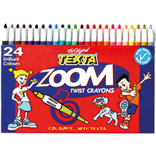 Texta Zoom Twist Crayons make drawing and colouring easy and mess free, as the crayon simply twists out of the barrel