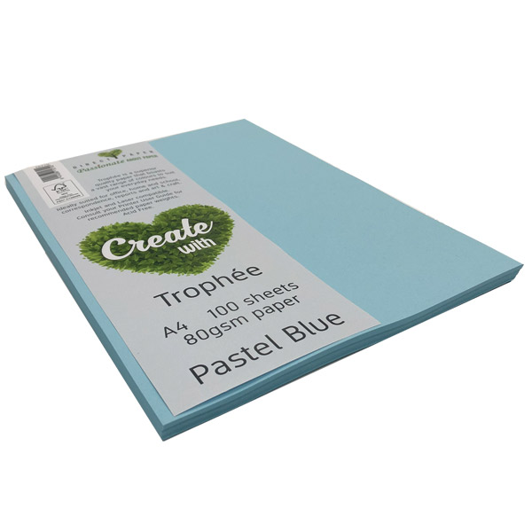 TROPHEE COLOURED PAPER A4 80GSM PASTEL BLUE PACK 100