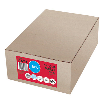 TUDOR CHEQUE MAILER ENVELOPE PLAIN TROPICAL SEAL W215 X L110MM WHITE BOX 500