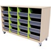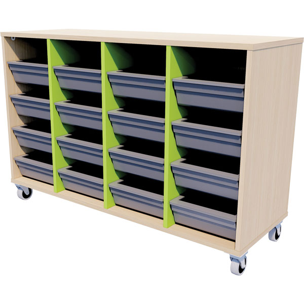 ZEALAND TOTE TRAY STORAGE UNIT MOBILE W1182 X D425 X H900MM AGED ASH FRAME JUICY DIVIDERS